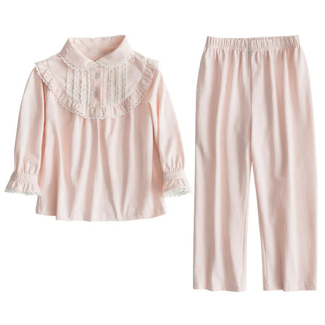 Children Girl's Lolita Pink Pajama Sets.Turndown Collar Tops+Pants.Vintage