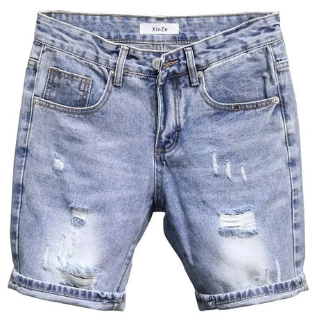 Men's Summer Blue Denim Shorts Brand Rotten Pockets