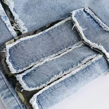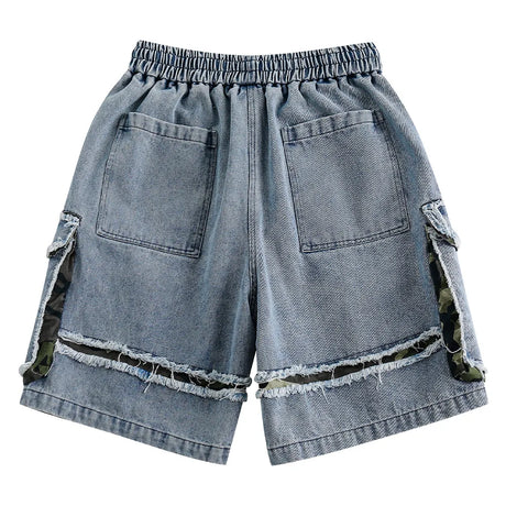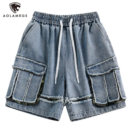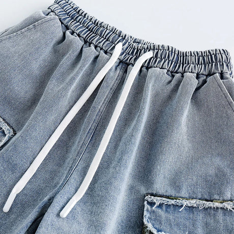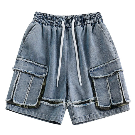 Streetwear Men Denim Shorts Tassel Three-dimensional Pocket Short