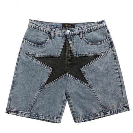 Streetwear Harajuku Denim Shorts 2023 New Men Patchwork