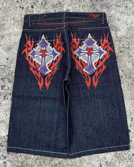 Retro Hip Hop Cartoon Graphic Streetwear Denim Shorts