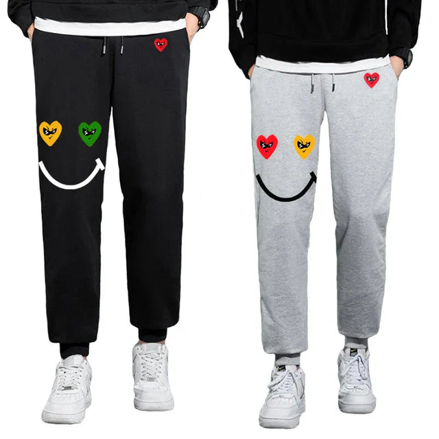 Men Women Spring Autumn Pants Heart Cartoon Embroidery
