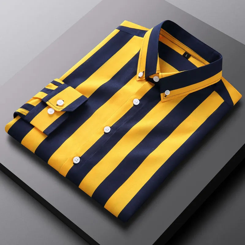 Fashion Lapel Button Loose Korean Striped Shirts Men