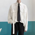 Gmiixder Cargo Long-sleeve Shirt with Tie Men's Oversize