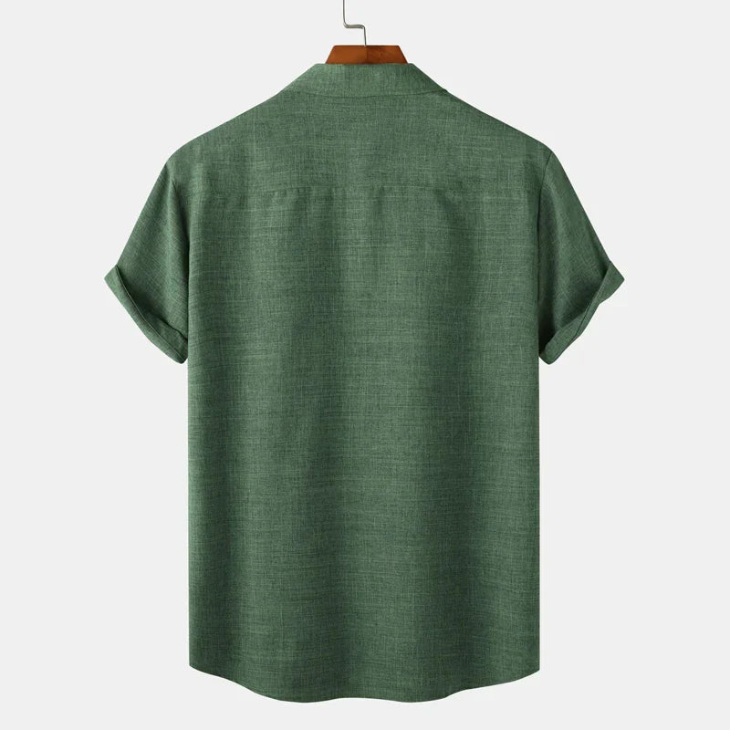 Green Cotton Linen Shirt Men 2023 Summer Brand