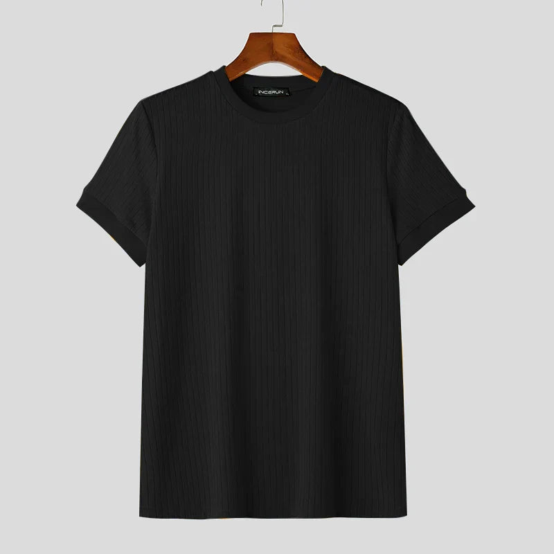 INCERUN Men T Shirt Solid Color Striped O-neck - Black / L / VIP Price is backordered and will ship as soon as it is back in stock.