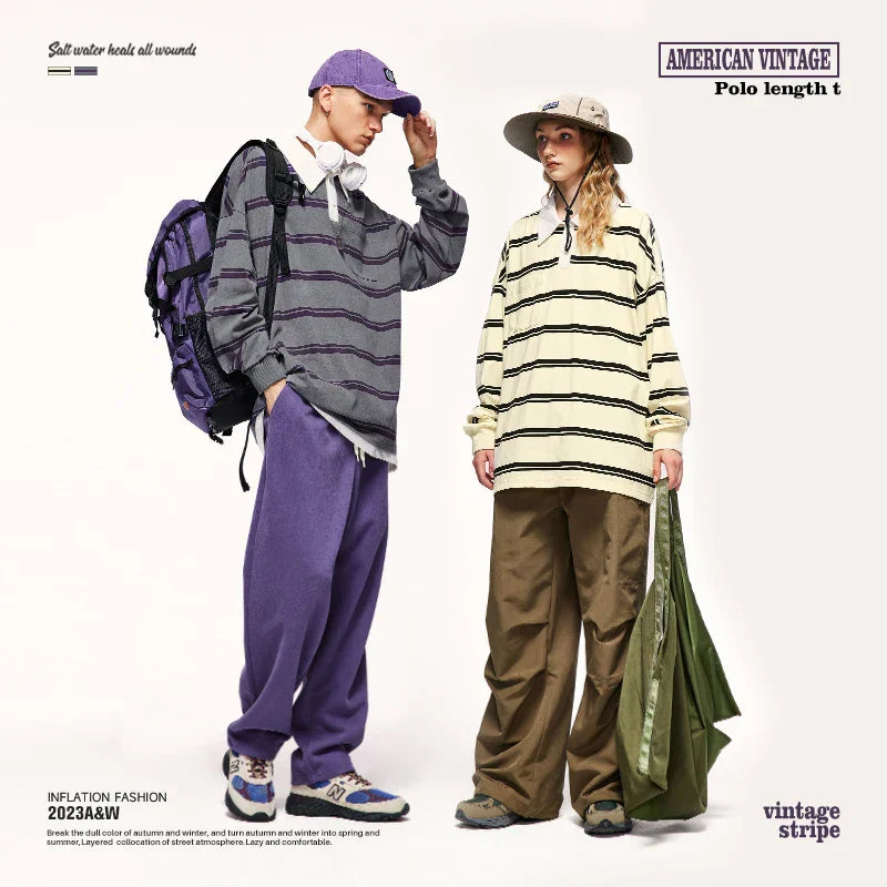 - Style 2 : Unisex Harajuku Long-Sleeved Polo Shirts Men