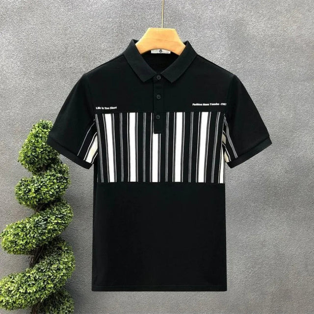 Korean Summer Men Striped Polo Shirts Streetwear Fashion