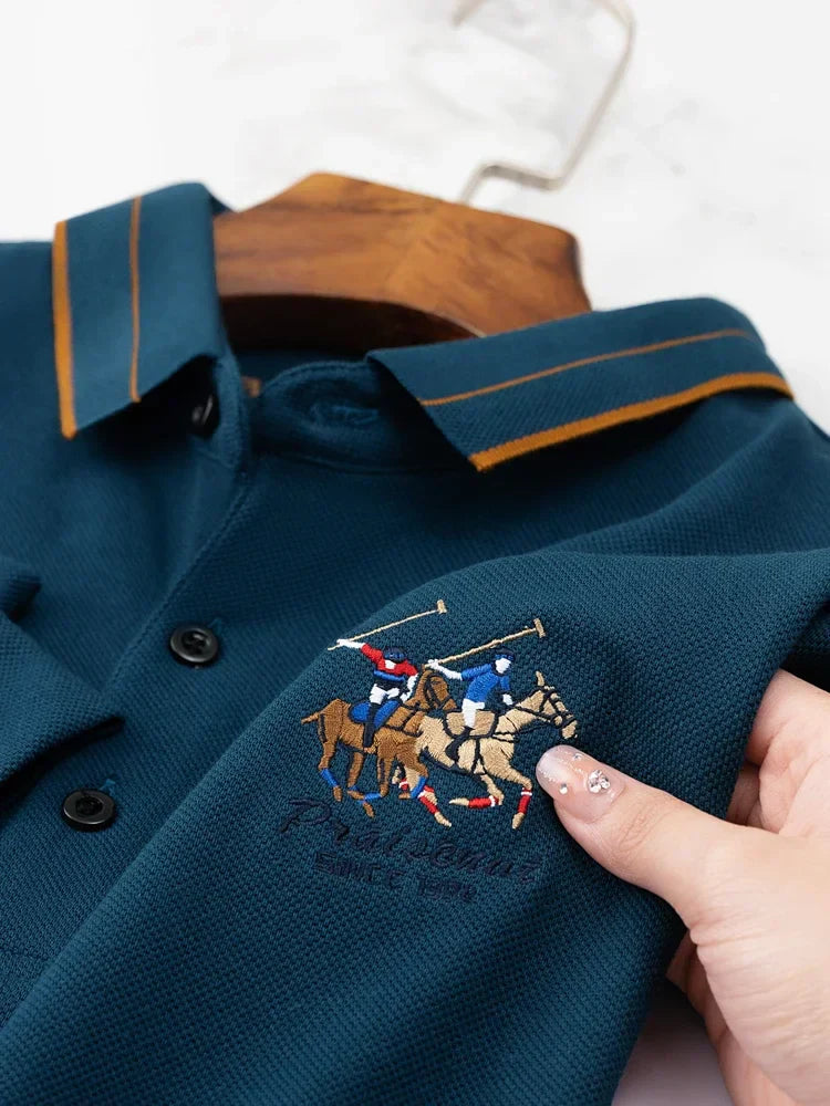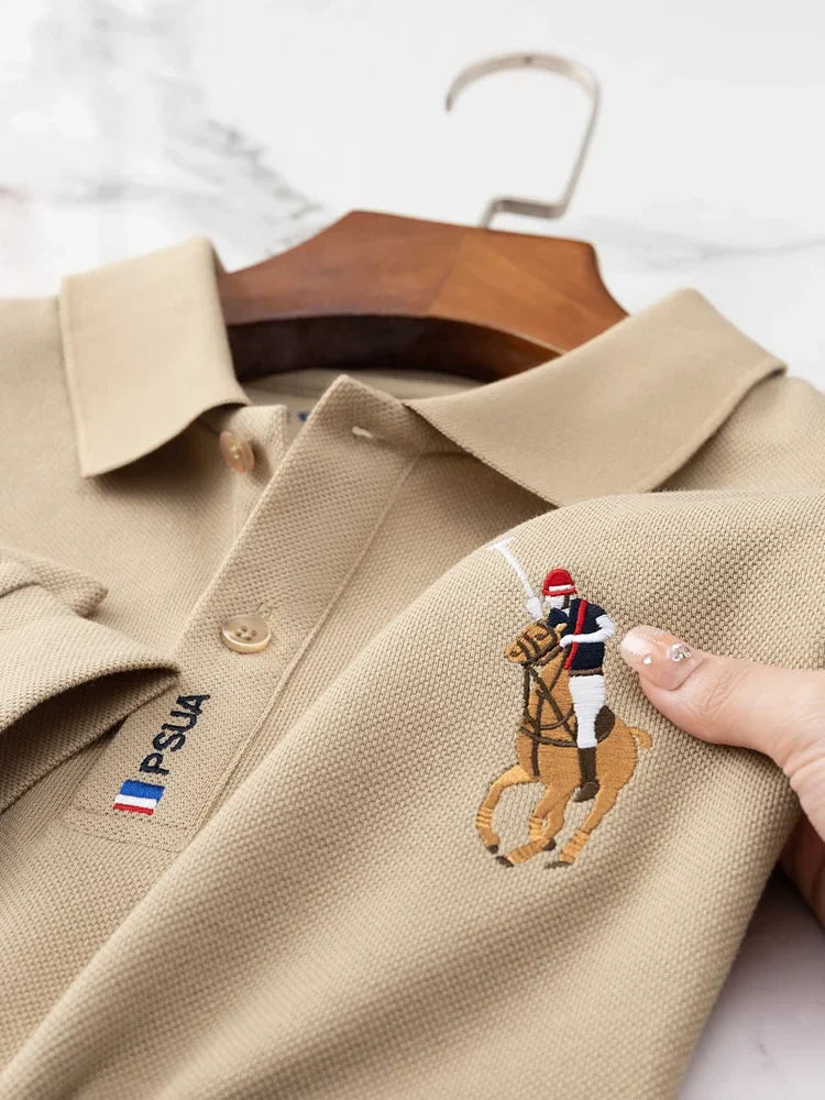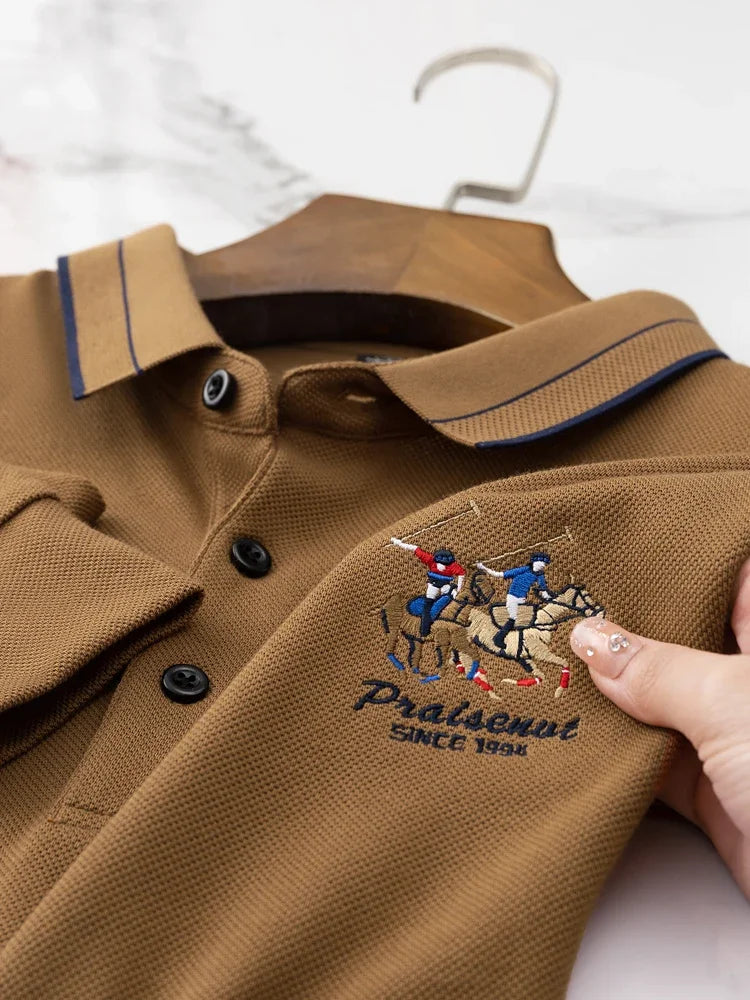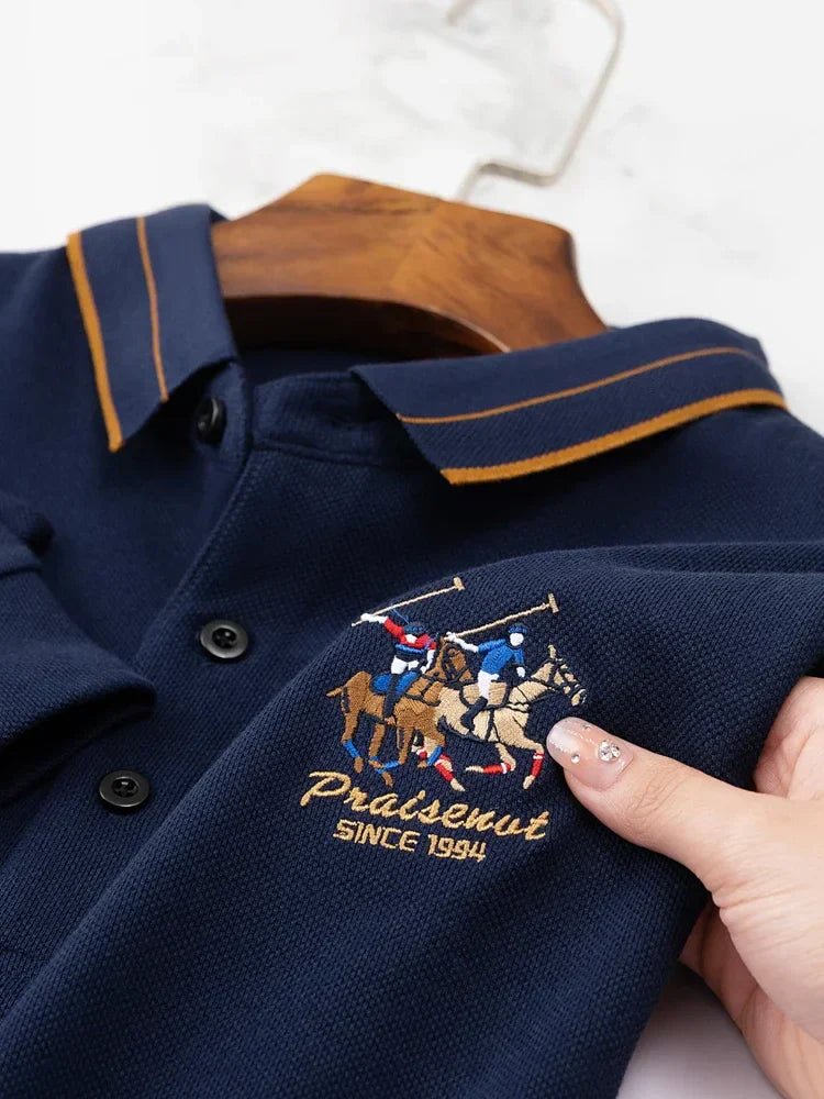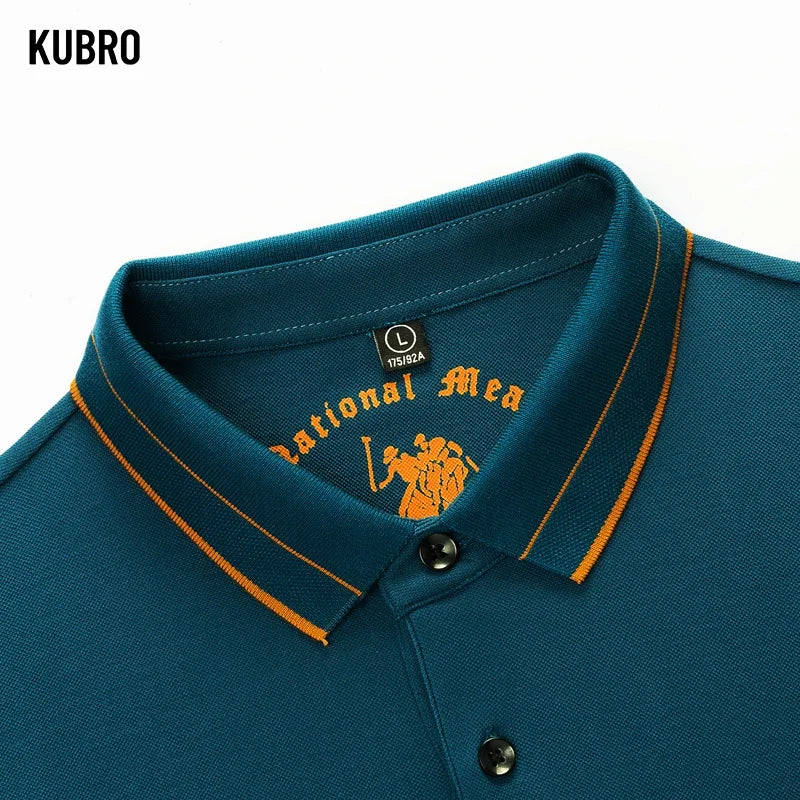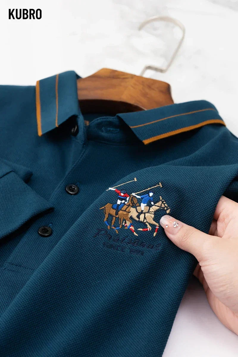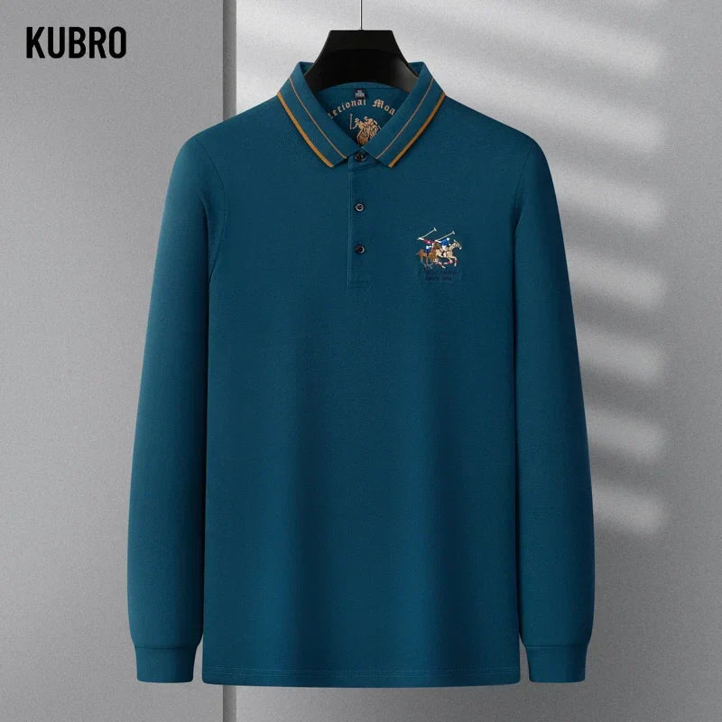 KUBRO Men's High Quality Embroidery Brand Plaid Long