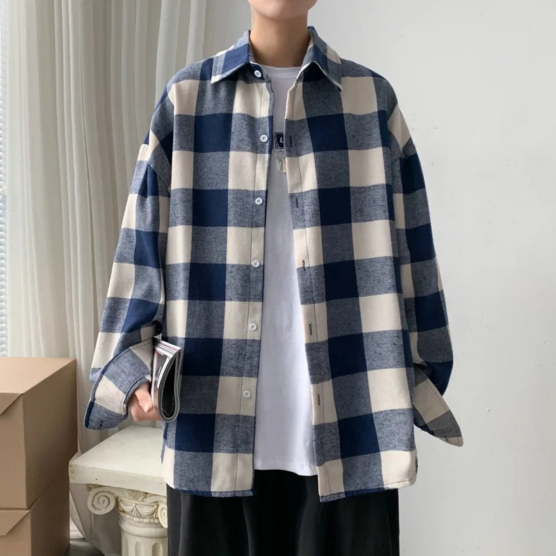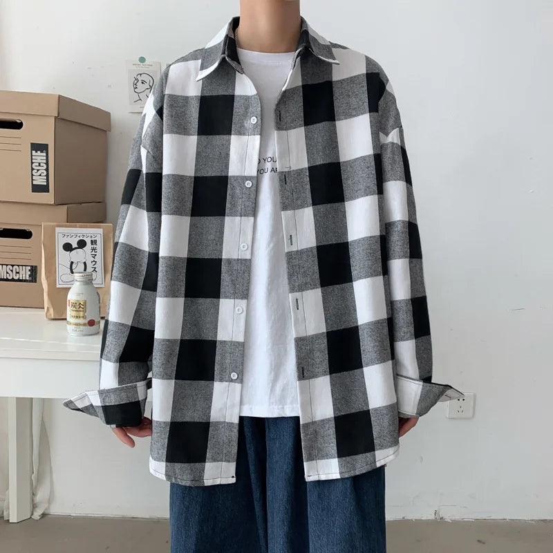 Long-sleeved plaid shirt men's spring Korean style trendy