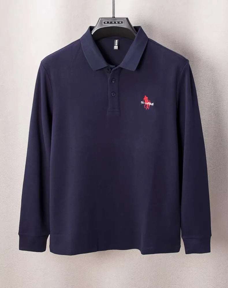 Luxury Fashion Embroidered Polo Shirt 100%Cotton Mens Long