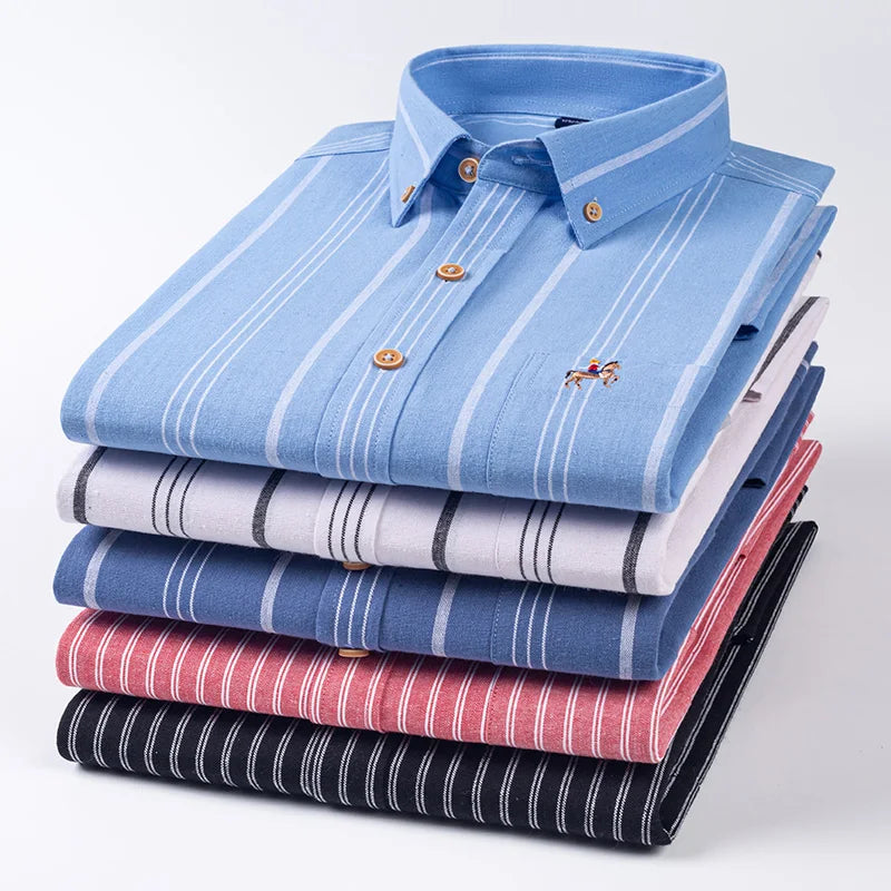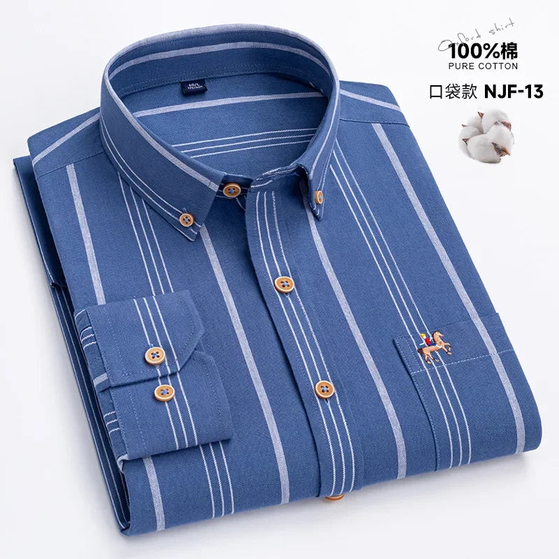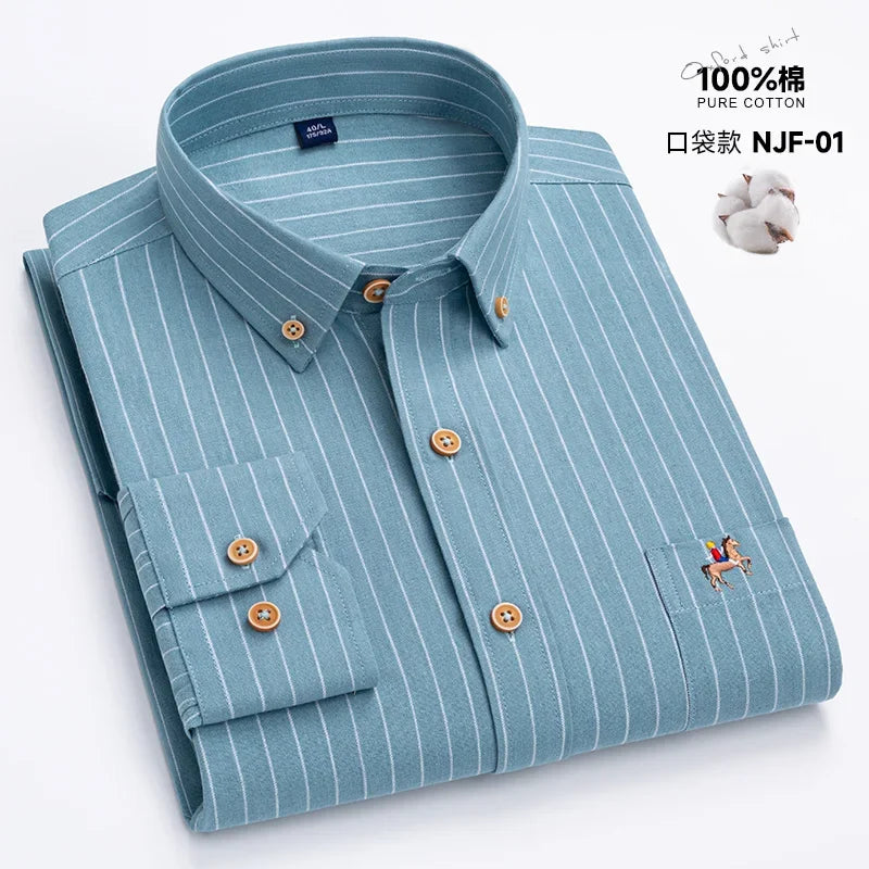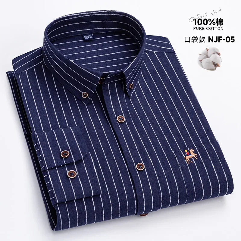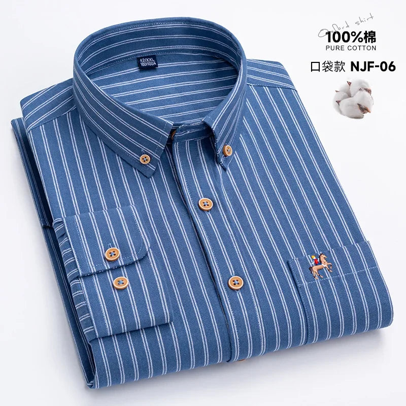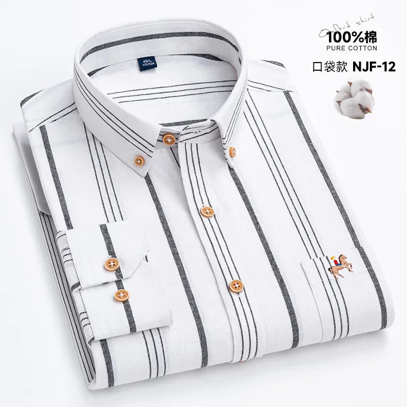 M~6XL Men's Shirt Long Sleeve Cotton Oxford Fashion