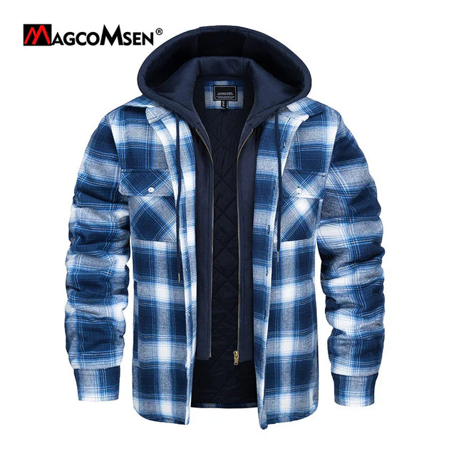 MAGCOMSEN Men's Flannel Shirt Jacket with Removable Hood