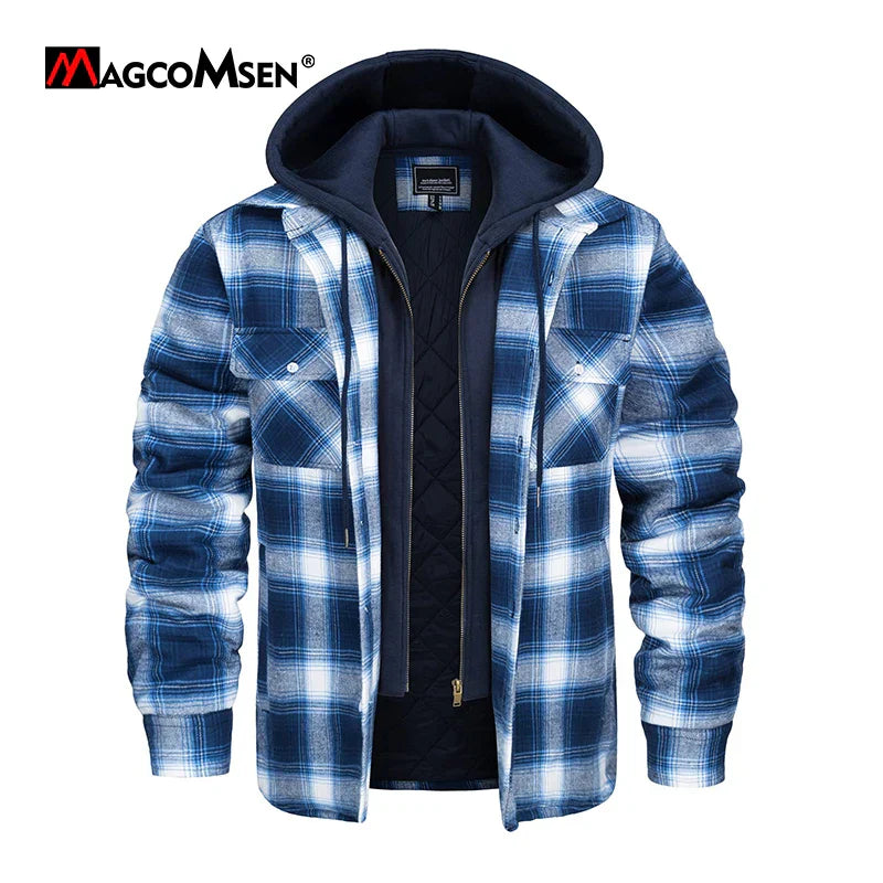 MAGCOMSEN Men's Flannel Shirt Jacket with Removable Hood - Blue-F6 / US 2XL (CN 4XL) / CHINA is backordered and will ship as soon as it is back in stock.