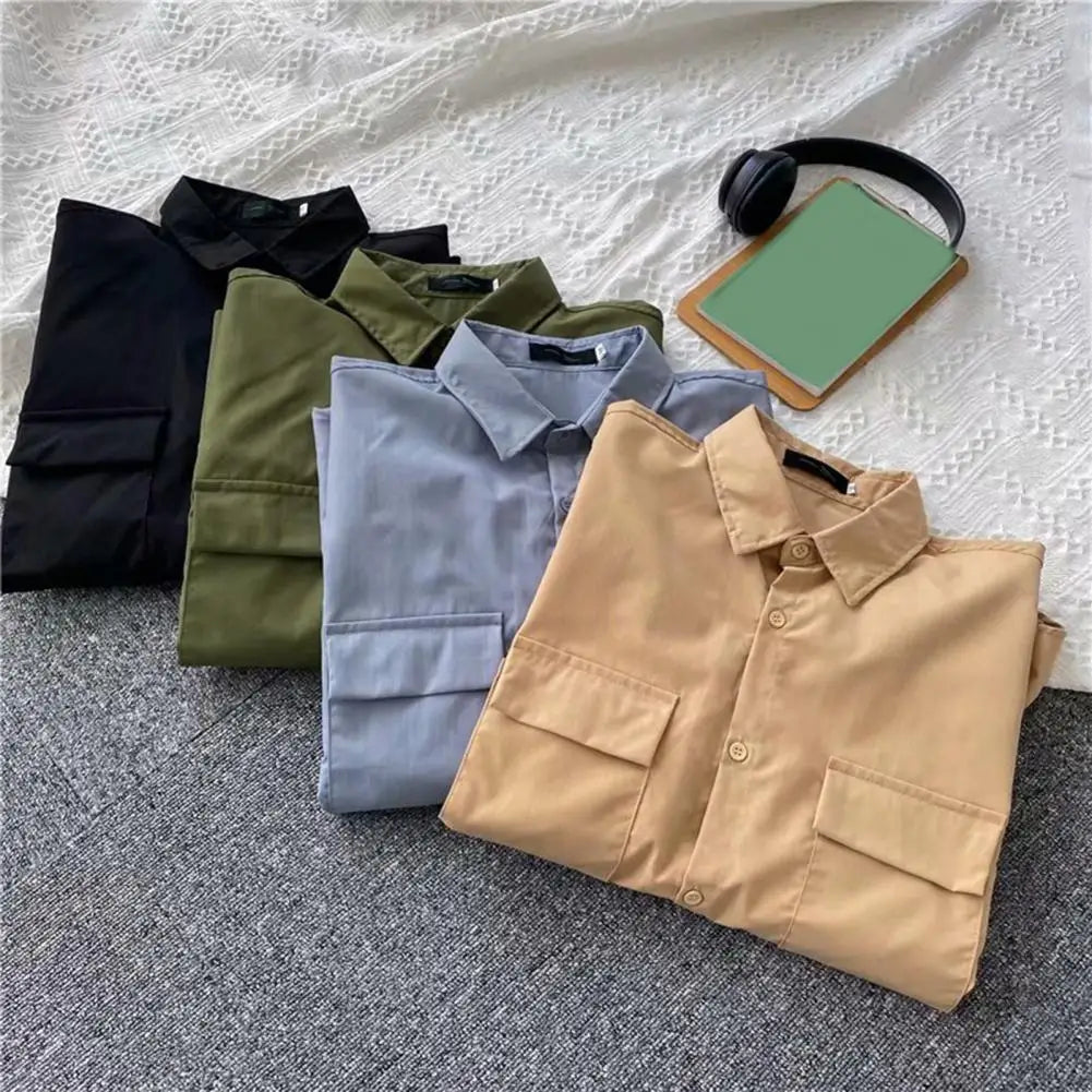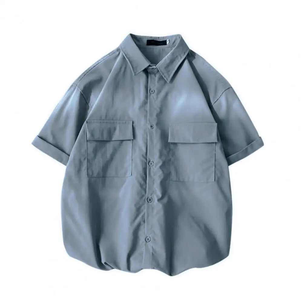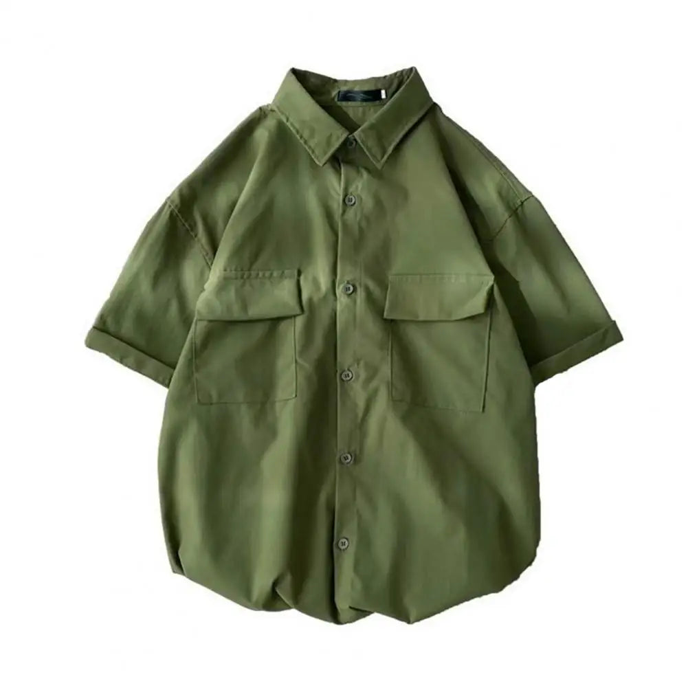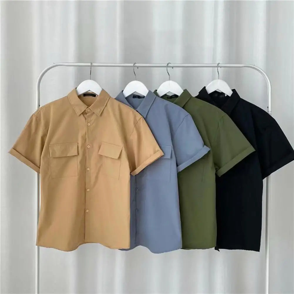 Male Cargo Shirt Lapel Half Sleeve Flap Pockets