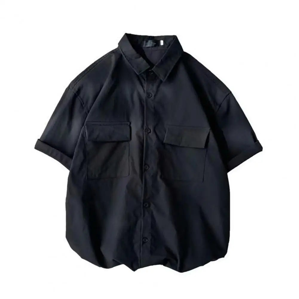 Male Cargo Shirt Lapel Half Sleeve Flap Pockets - Black / XL / VIP Price is backordered and will ship as soon as it is back in stock.