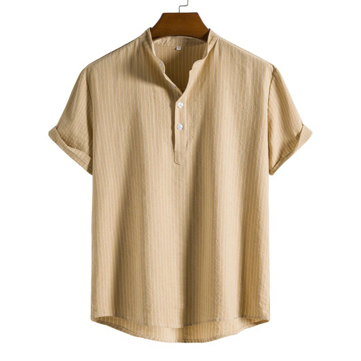 Men's Casual Blouse Cotton Linen Shirt Loose Tops - Khaki / S / CHINA is backordered and will ship as soon as it is back in stock.