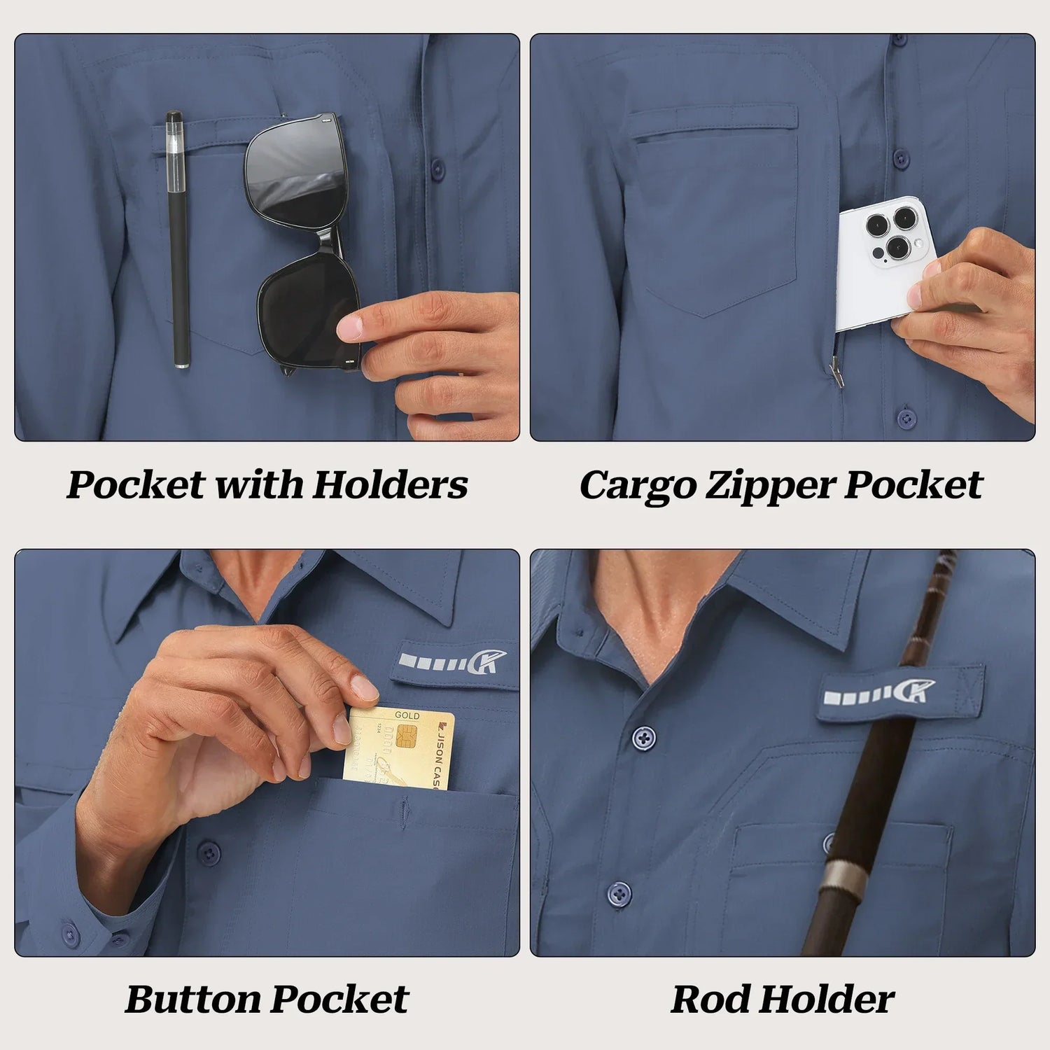 Men's Fishing Shirts Casual Cargo Hiking Shirt Long