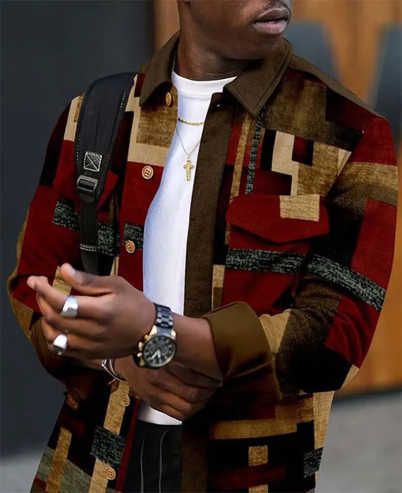 Men's Shirts Coat Patchwork Flap Pocket Button Up