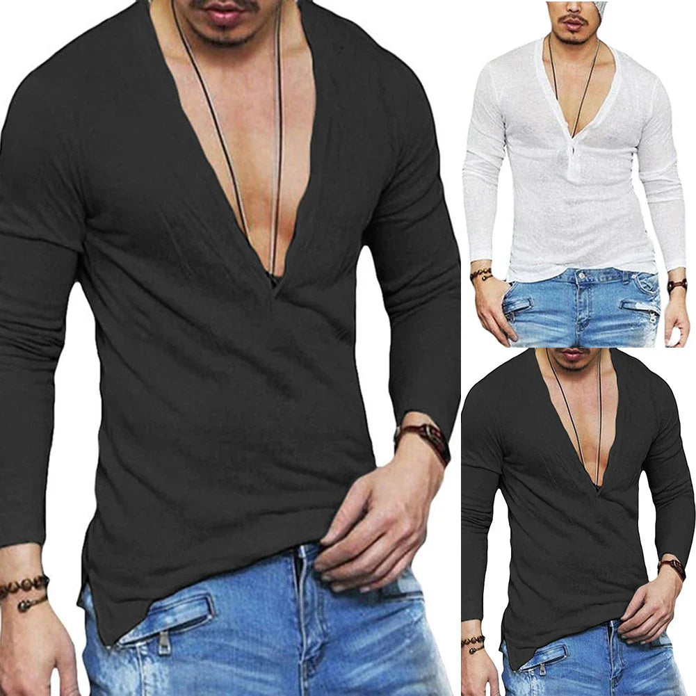 Mens Plain Slim Fitness Long Sleeve T-shirt Deep