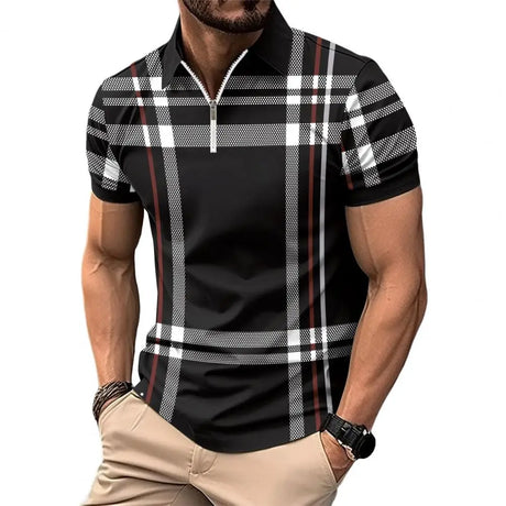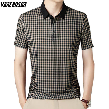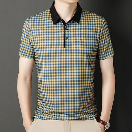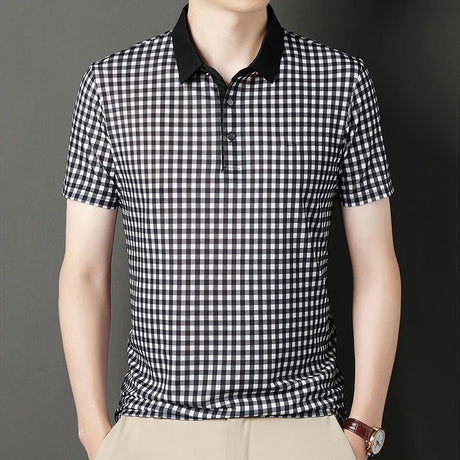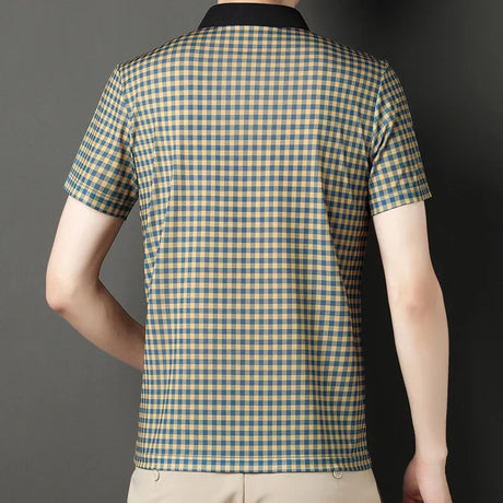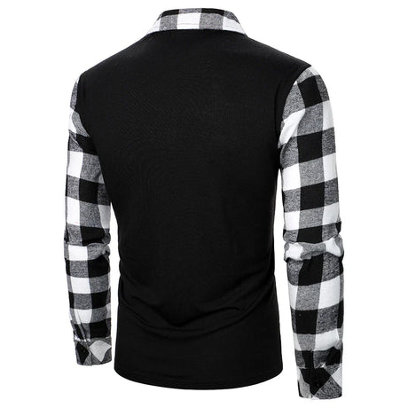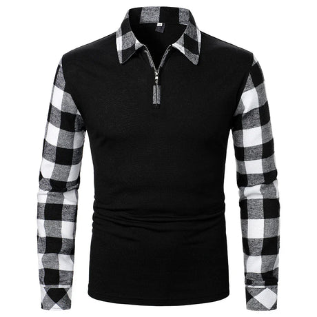 Men Polo Shirt Men Long Sleeve Top Plaid