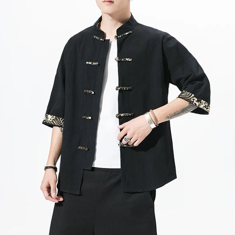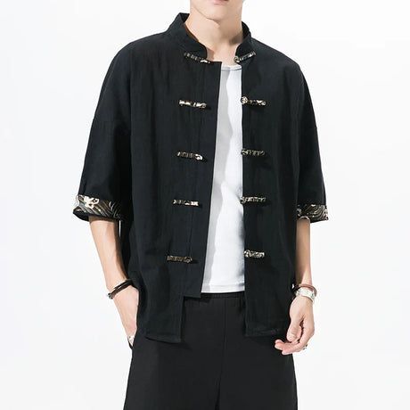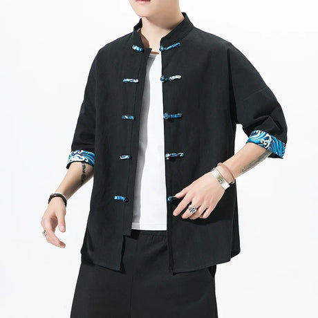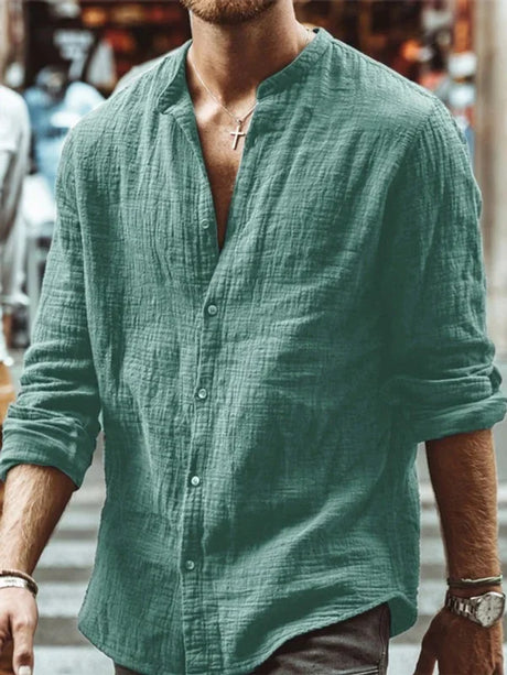 Men Clothing 2023 Fall Men's Cotton Linen Long-sleeved