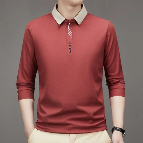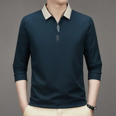 Men's Long Sleeve Contrasting Colors Polo T-shirt Casual
