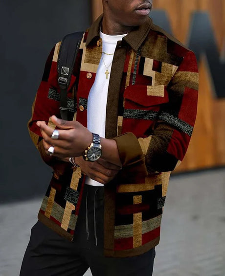 Men's Shirts Coat Patchwork Flap Pocket Button Up