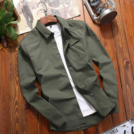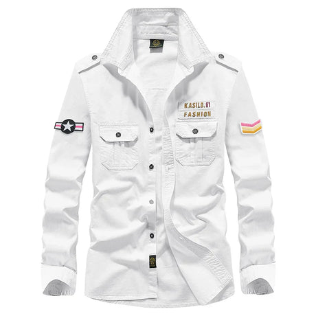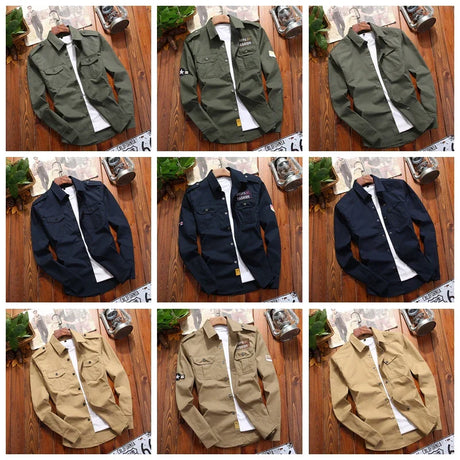 Men's Shirts Military Casual Shirt Cotton Khaki Retro