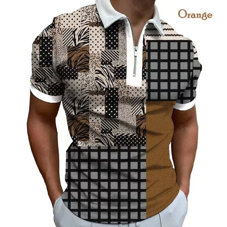 Men's Retro Polo Shirt 3D Plaid Print Top
