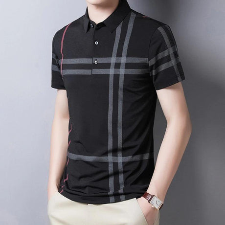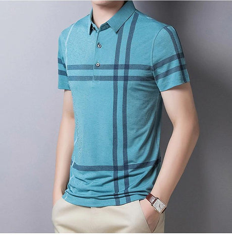 Men Summer Short Sleeve Plaid Polo Shirts Streetwear