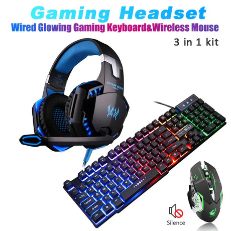 Gaming Wired Keyboard + Wireless Mouse+ Gaming Headset