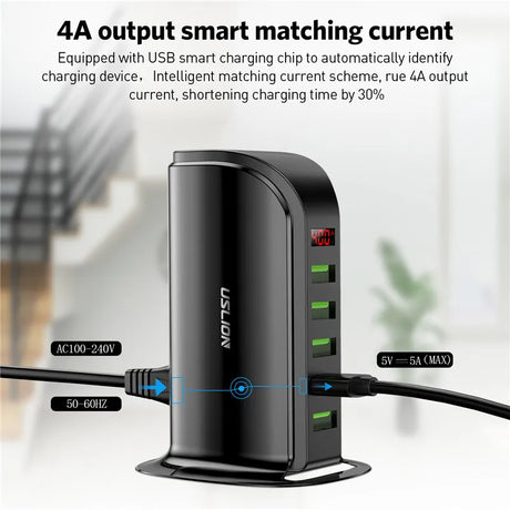 USLION 5 Ports USB Charger HUB LED Display