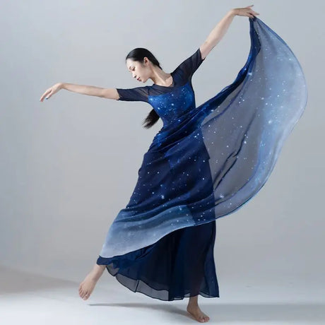 Starry Sky Blue Gradient Chiffon Dance Suit Women
