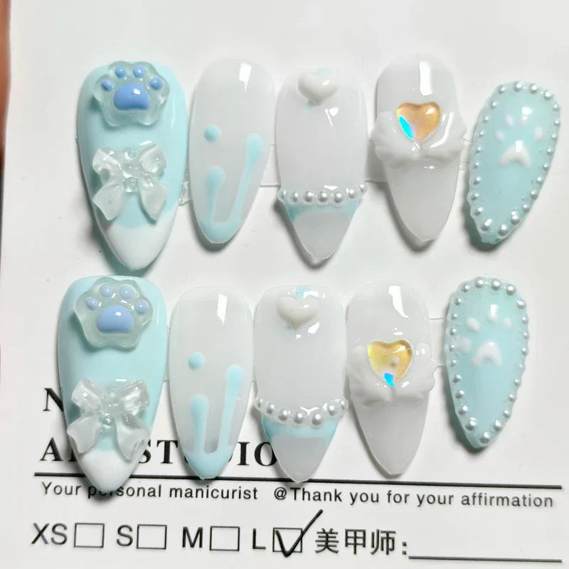 Handmade Custom Made False Nail Art With Pearls
