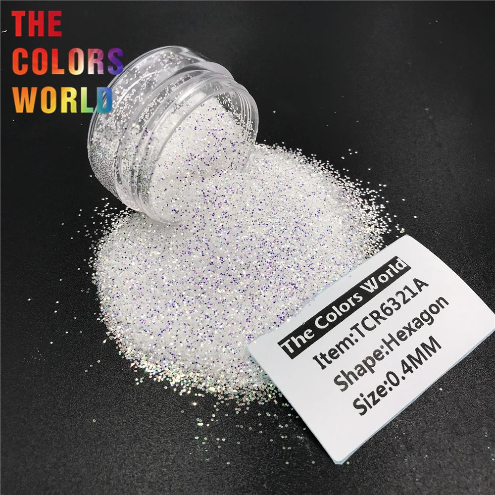 TCR6321A White Iridescent Rainbow Hexagon Shape Nails Glitter - TCR6321A 0.4MM 200g / VIP Price is backordered and will ship as soon as it is back in stock.