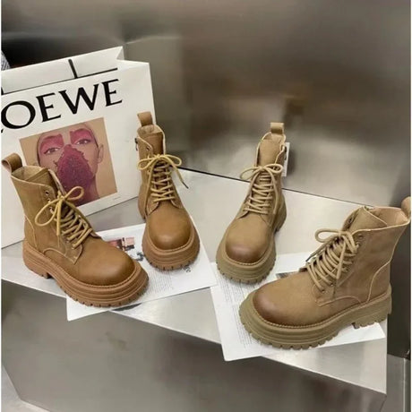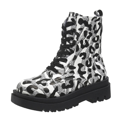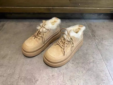Women's Round Toe Lace-Up Plush Ankle Boots