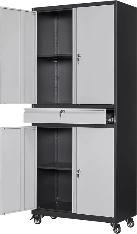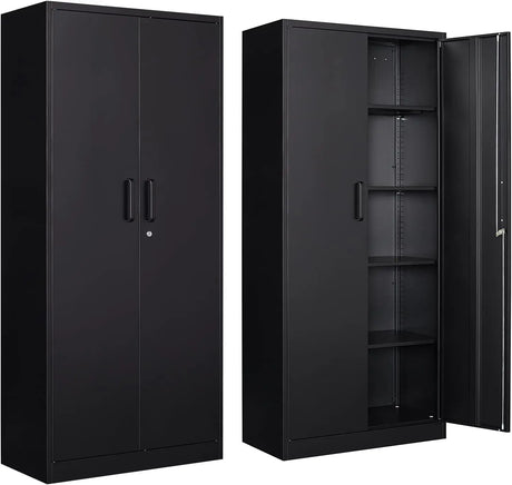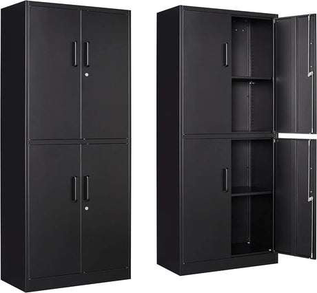 Metal Storage Cabinet, 72" Black Locking Storage Cabinets