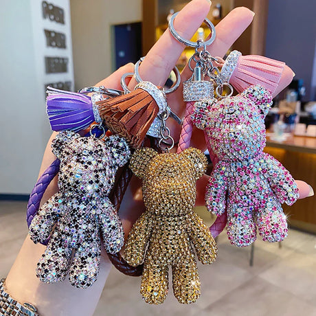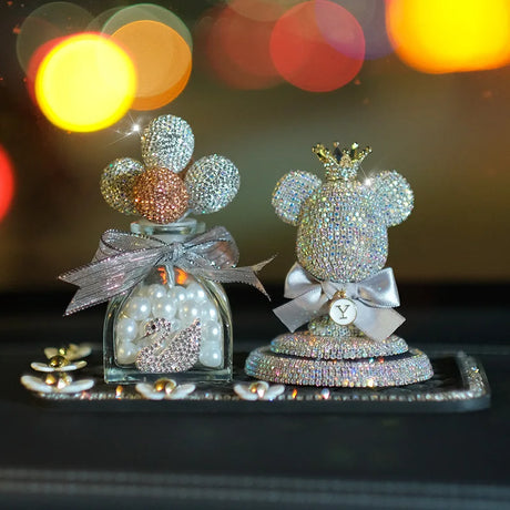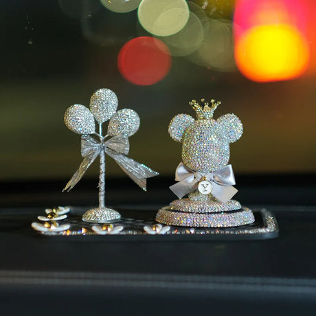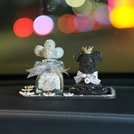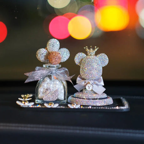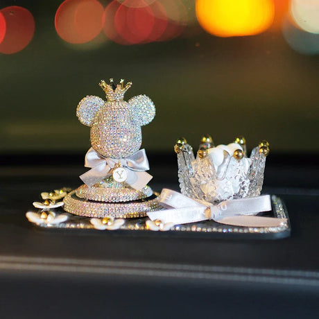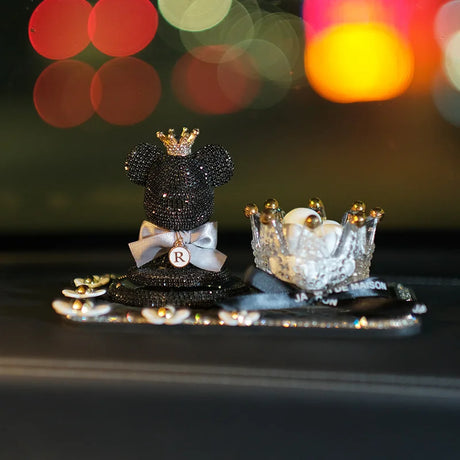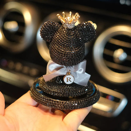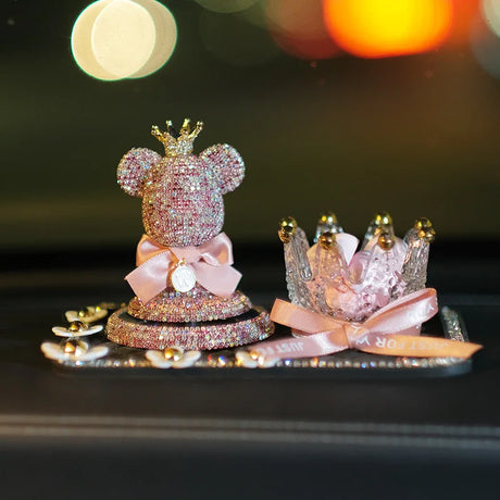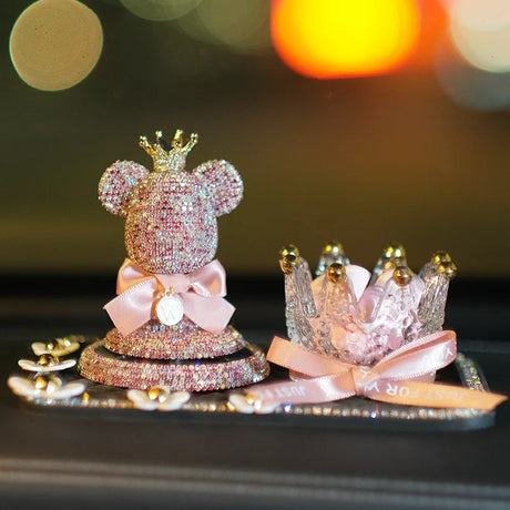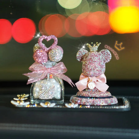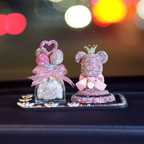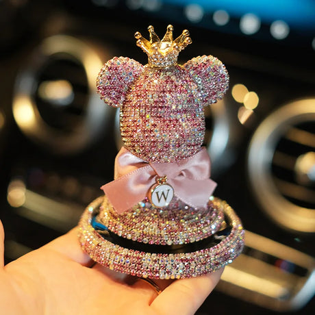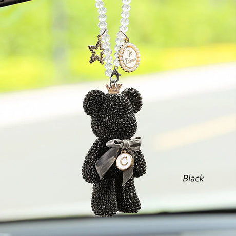 Cartoon Diamond Crystal Bow Bear Car Pendant Mirror