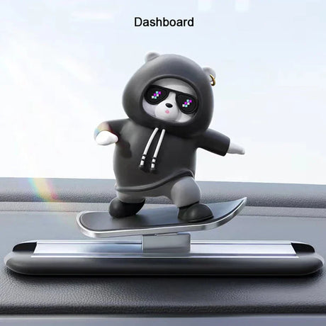 Creative Car Ornament Funny Cartoon skateboarding Bear Removable