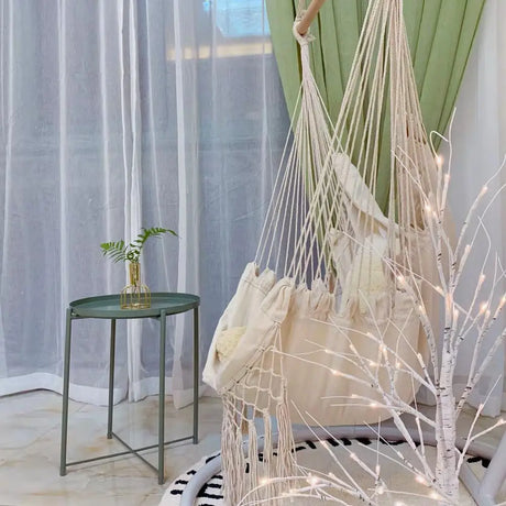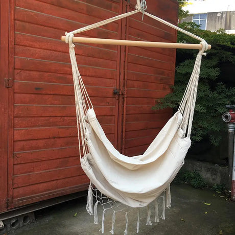 Indoor Outdoor Tassels Hammock Garden Patio White Cotton