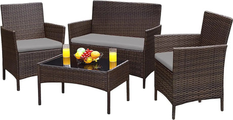 Outdoor Sofa Set of 4 with Soft Cushion
