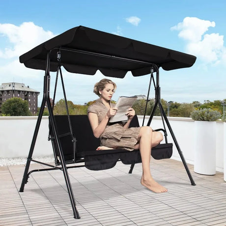 Outdoor Porch Swing with Adjustable Canopy and Durable