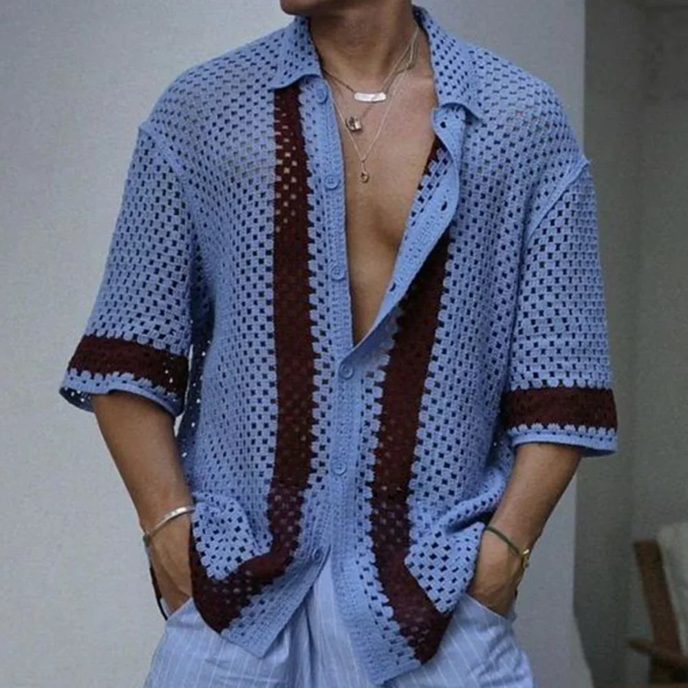 Men's Drop Shoulder Long Sleeve Knit Cardigan Crochet - Blue / L / VIP Price is backordered and will ship as soon as it is back in stock.