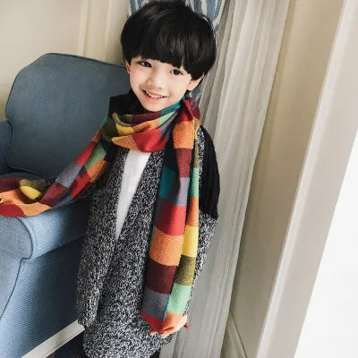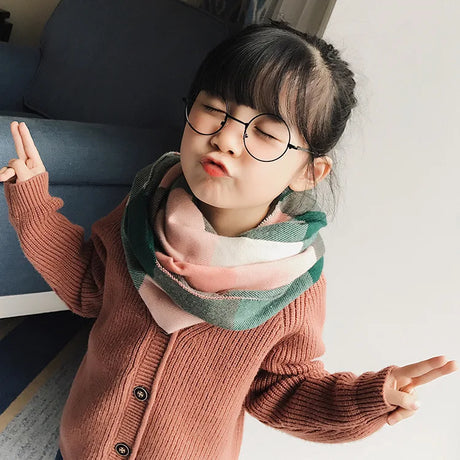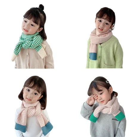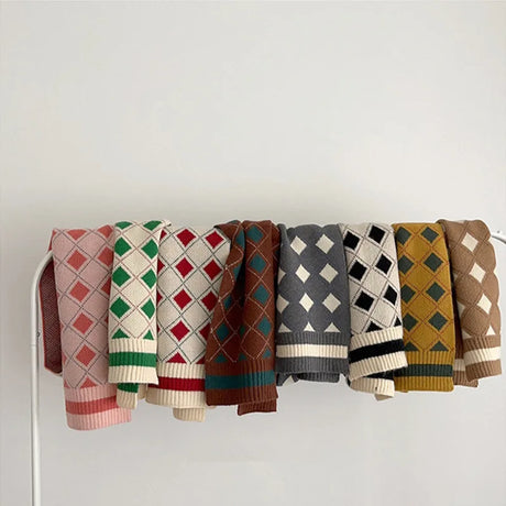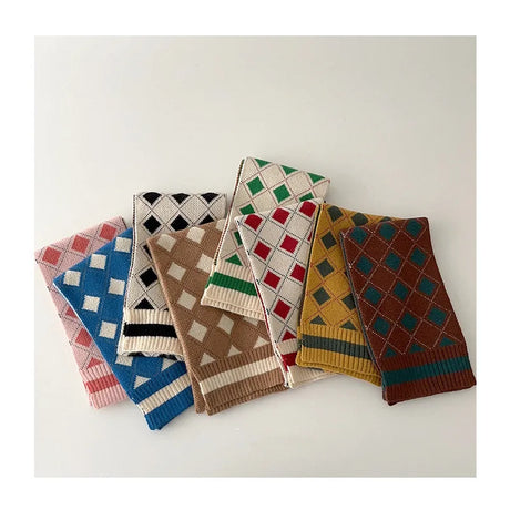 Autumn Winter Children Scarfs Knitted Plaid Kids Scarf
