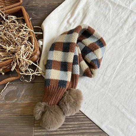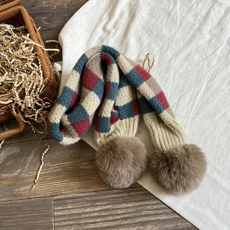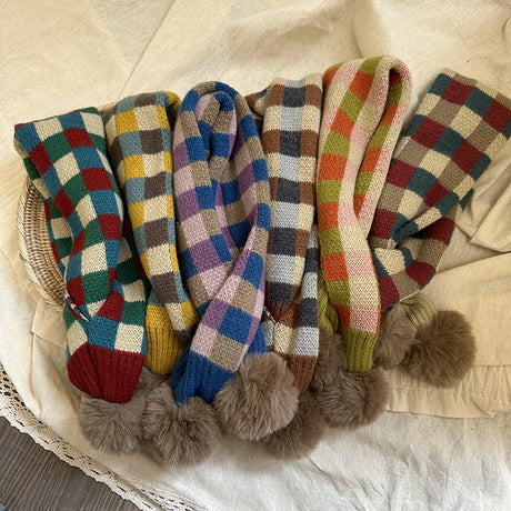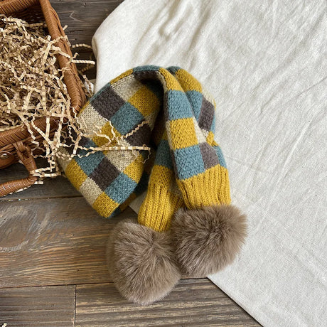 Autumn Winter Warm Children's Scarves Plaid Plush Balls