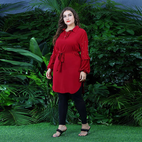 $22.44$44.88Unit price /UnavailableIn stock (4800 units) Chemisier Femme Plus Size Belt Tied Waist Camisas