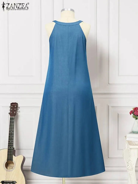2023 PLUS SIZE ZANZEA Fashion Denim Long Dress