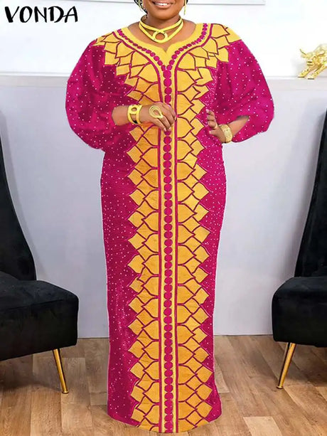 Plus Size 5XL VONDA Bohemian Women Printed Maxi