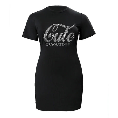 Plus Size Casual Dress Womens Plus Rhinestone Letter